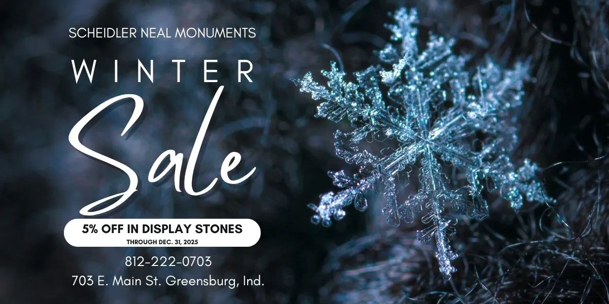 All of our monuments currently in our display at our location are receiving a 5% discount if ordered before Dec. 31, 2025